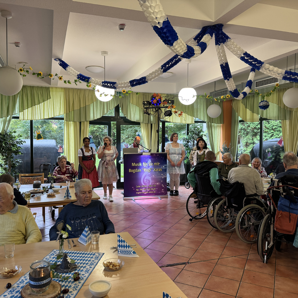 Unser Oktoberfest brachte eine tolle Stimmung zu uns ins Haus. Alle Bewohner haben den gemeinsamen Nachmittag und Abend sehr genossen. Leckere oktoberfesttypische Speisen und Getränke sowie die Musik von Bogdan „Bogi“ Karas machten den Tag perfekt. Es wurde gelacht, gefeiert und sogar das ein oder andere Tanzbein geschwungen. Vielen lieben Dank an alle, die bei unserem Fest so fleißig mitgewirkt haben!